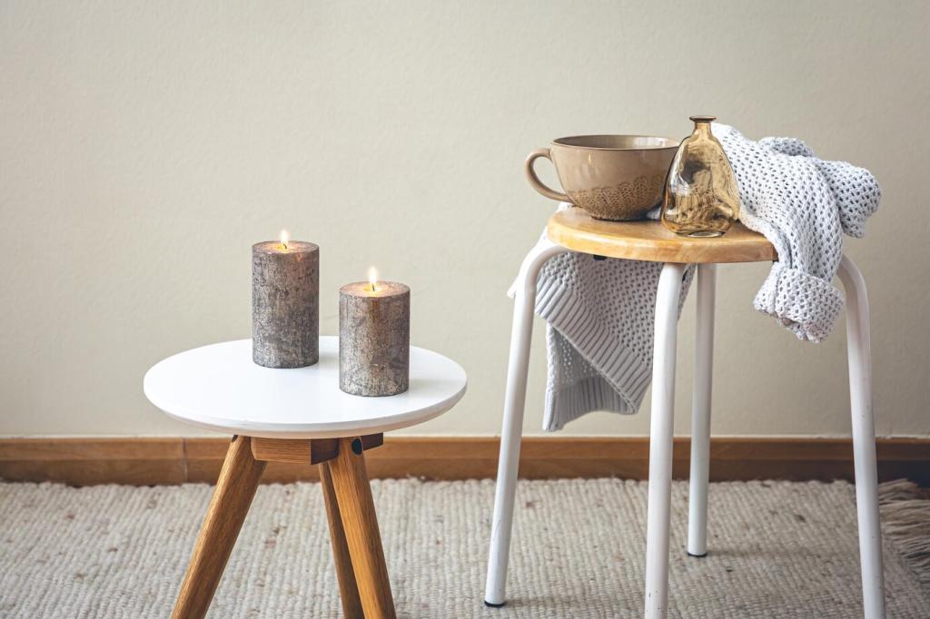 Ein kleiner Tisch für Tasse, Lesebrille, Notizbuch und Lesezeichen verhindert hektisches Aufstehen. Achten Sie auf stabile Höhe, rutschfeste Oberfläche und eine Kante gegen Rollstifte. Welche Dinge liegen bei Ihnen immer bereit? Erzählen Sie uns davon.